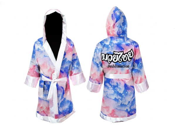 Personalizovaný sublimační bojový róba nebo boxerský župan. Potisknutý boxerský róba pro bojovníky Muay Thai.